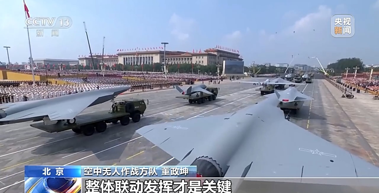 空中无人作战方队 董政坤:我作为僚车驾驶员,最重要的就是稳稳地跟上基准车的行进节奏,这样后续其他的车辆也能稳定跟上,阅兵队形就是这样,单人单车是基础、整体联动发挥才是关键,必须把团队协作、高度契合发挥到极致。
