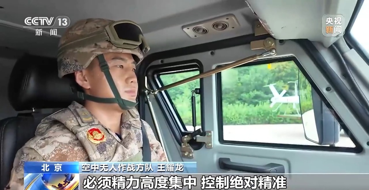 空中无人作战方队 王耀龙:我们方队装备超宽超限、队形设置较为复杂,此次受阅队形中最宽的排面标齐间距近20米,有一半排面是斜向卡距,这就要求我们驾驶过程中必须精力高度集中、控制绝对精准。